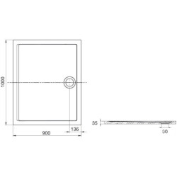 Kolor biały, wykończenie połysk. Brodzik zawiera w komplecie odpływ brodzikowy płaski z pokrywą chrom (30 l/min). Czyszczony z góry.