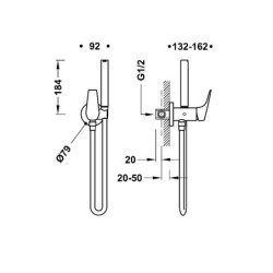 Uchwyt stały do słuchawki prysznicowej może być zamontowany po prawej lub lewej stronie, zależnie od preferencji użytkownika.