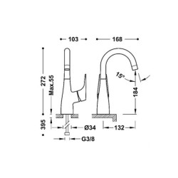 Elastyczne węże zasilające G3/8: Bateria jest dostarczana z elastycznymi wężami zasilającymi o rozmiarze G3/8, które służą do podłączenia baterii do źródła wody. Elastyczność węży ułatwia instalację i zapewnia elastyczność podczas użytkowania.