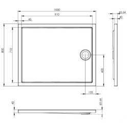 Prostokątny kształt i wymiary 100 x 80 cm zapewniają dużą powierzchnię użytkową i komfort podczas kąpieli, jednocześnie oszczędzając miejsce w łazience. Brodzik wyposażony jest w standardowy odpływ o średnicy 90 mm, który gwarantuje szybkie i efektywne odprowadzanie wody.