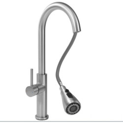 Podstawa każdej funkcjonalnej kuchni to odpowiednia bateria kuchenna. Mosiężny korpus to gwarancja trwałości i stabilności baterii. Szczotkowana powierzchnia w kolorze złotym jest najnowszym trendem. Nadaje ona baterii, oprócz niezwykłego wyglądu, odporności na zadrapania i zanieczyszczenia. Długoletnią niezawodność gwarantuje użycie ceramicznej głowicy. Wyginana wylewka pozwala na skierowanie strumienia w dowolne miejsce. Końcówka wylewki posiada przełącznik, pozwalający na wybór między strumieniem rozproszonym a skupionym.