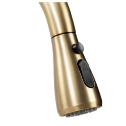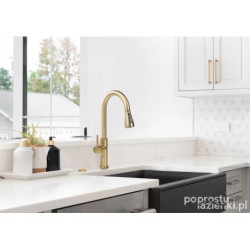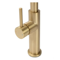 Podstawa każdej funkcjonalnej kuchni to odpowiednia bateria kuchenna. Mosiężny korpus to gwarancja trwałości i stabilności baterii. Szczotkowana powierzchnia w kolorze złotym jest najnowszym trendem. Nadaje ona baterii, oprócz niezwykłego wyglądu, odporności na zadrapania i zanieczyszczenia. Długoletnią niezawodność gwarantuje użycie ceramicznej głowicy. Wyginana wylewka pozwala na skierowanie strumienia w dowolne miejsce. Końcówka wylewki posiada przełącznik, pozwalający na wybór między strumieniem rozproszonym a skupionym.