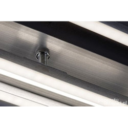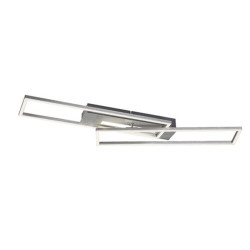 Składająca się z kanciastych elementów oprawa sufitowa Demetrius dzięki czystemu wzornictwu, dużej jasności i wszechstronności jest idealnym wyborem nawet do najbardziej nowoczesnych salonów. Wykonana z metalu oprawa w kolorze srebrnym i szczotkowanego aluminium jest uzupełniona białym kloszem z tworzywa sztucznego i może być przymocowana do sufitu za pomocą prostokątnej podstawy dekoracyjnej. Podstawa dekoracyjna jest połączona dwoma dużymi, prostokątnymi elementami oprawy skierowanymi na boki. Oprawa Demetrius posiada wbudowane źródło światła LED klasy energetycznej G o mocy 40 W, strumieniu świetlnym z kloszem - 2850 lumenów, bez klosza - 4400 lumenów. Trwałość źródła światła wynosi 30.000 godzin. Oprawa ma temperaturę barwową 4000K, co oznacza, że świeci naturalnym białym światłem, tworząc w pomieszczeniu nowoczesny, czysty efekt. Jasność oprawy Demetrius jest regulowana za pomocą trzystopniowego przełącznika, a także posiada regulowaną za pomocą przełącznika ściennego funkcję pamięci. Wymiary oprawy są następujące: szerokość 830 mm, wysokość 190 mm, odległość od sufitu 85 mm.