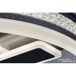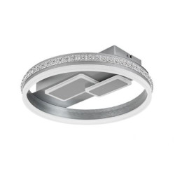 Okrągła lampa sufitowa Roxana jest polecana przede wszystkim do nowoczesnych salonów, jadalni lub sypialni. Szary metalowy element mocujący uzupełnia akrylowy klosz, a lampę można przymocować do sufitu za pomocą czworokątnej podstawy dekoracyjnej. Lampa Roxana jest wyjątkowa dzięki połączeniu okrągłych i kwadratowych kształtów, powierzchni ze przecieranego aluminium oraz kryształowej dekoracji wokół pierścieniowego elementu lampy. Lampa sufitowa zawiera wbudowane źródło światła LED o mocy 50 W, strumieniu świetlnym 2 450 lumenów i temperaturze barwowej 4 000 K. Naturalne białe światło lampy Roxana nadaje pomieszczeniu czysty, nowoczesny wygląd. Średnica lampy wynosi 400 mm, a odległość od sufitu - 100 mm. Prezentowany model ma 5 lat gwarancji.