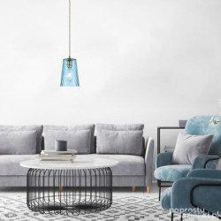 Zgodnie ze swoją nazwą, nowoczesna pojedyncza lampa wisząca Azurine wypełni Twój salon lub sypialnię lazurowym, kryształowym światłem. Lampa jest wykonana z metalu i szkła, w szczególnie eleganckiej złoto-niebieskiej kolorystyce; głowica lampy jest połączona z okrągłą dekoracyjną bazą tekstylnym kablem. Pofalowana powierzchnia podłużnego, szklanego klosza w kształcie dzwonu przywodzi na myśl powierzchnię morskiej wody. Lampa Azurine może być używana z pojedynczą żarówką o mocy do 40W, typ gniazda E27. Jeżeli chcesz podkreślić intymną, domową atmosferę pomieszczenia, wybierz źródło emitujące ciepłe białe światło. Wymiary wiszącej lampy Azurine są następujące: średnica klosza 150mm, odległość od sufitu 1750mm, średnica instalacyjna 120mm. Model ten dostarczany jest bez źródła światła.