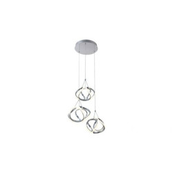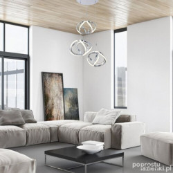 Potrójna lampa wisząca Palmira będzie spektakularnym dodatkiem do Twojego nowoczesnego salonu. Lampa w kolorze chromu wykonana jest z metalu i tworzywa sztucznego oraz z pewnością przyciągnie uwagę trzema kloszami o nieregularnych, sferycznych kształtach na różnych wysokościach. Jej wbudowane, energooszczędne źródła światła LED mają moc 50 W, jasność 3400 lumenów oraz żywotność 20 000 godzin. Temperatura barwowa źródeł światła o wynosi 3000 K, tak więc emitują one ciepłe, białe światło, tworząc w pomieszczeniu przyjemną, intymną atmosferę. Średnica lampy wiszącej Palmira wyposażonej w okrągłą dekoracyjną bazę wynosi 500 mm, a jej odległość od sufitu to 1500 mm. Ten spektakularny model objęty jest 5-letnią gwarancją.