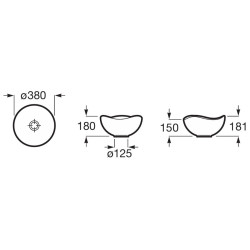 Model nie posiada przelewu ani otworu na baterię, co wzmacnia jego minimalistyczny, nowoczesny wygląd. W zestawie znajduje się ceramiczna osłona odpływu w kolorze umywalki – korek należy dokupić osobno (rekomendowany: A506403900).
