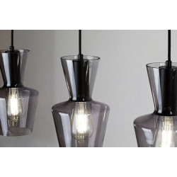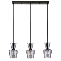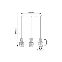 Stonowana kolorystyka i kreatywne wzornictwo oprawy wiszącej Abra z trzema punktami świetlnymi sprawia, że oprawa może stać się stylowym dodatkiem wyposażenia wielu nowoczesnych salonów. Wykonana z metalu oprawa w kolorze czarnym jest uzupełniona zwężającymi się, otwartymi od dołu kloszami z barwionego szkła, a ułożone obok siebie głowice oprawy są połączone z długą, prostokątną, czarną podstawą dekoracyjną za pomocą przewodów tekstylnych. Mniejsze, rozszerzające się ku górze części poszczególnych kloszy, które nadają tej oprawie charakterystyczny wygląd tworzą kołnierz wokół górnej części głowic oprawy. Do oprawy Abra można zastosować trzy źródła światła z trzonkiem E27 o mocy max. 60 W każda. Ponieważ oprawa wisząca jest rekomendowana przede wszystkim do salonu, poleca się stosowanie źródła światła o naturalnie białej barwie, które stworzy nowoczesny, jasny efekt. Wymiary oprawy wynoszą: szerokość 600 mm, wysokość poszczególnych kloszy 250 mm, średnica poszczególnych kloszy 150 mm, zwis oprawy 1700 mm. Potrójna oprawa wisząca Abra jest dostarczana bez źródeł światła.