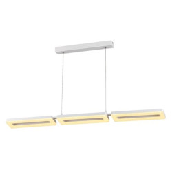 Nowoczesna lampa wisząca Alana ze swoją matowo białą kolorystyką i prostym, a jednocześnie spektakularnym designem, będzie doskonale wyglądać w różnych pomieszczeniach Twojego mieszkania. Możesz umieścić ją w salonie, jadalni lub nawet w kuchni. Dzięki jej dużej mocy świetlnej i rozmiarom, może ona efektywnie oświetlać nawet przestronne pomieszczenie. Lampa jest wykonana z metalu i tworzywa sztucznego, a kolor światła emitowanego przez wbudowane źródła LED o temperaturze barwowej 3000 K jest ciepłą bielą, co podkreśla przyjemną, intymną atmosferę. Moc źródeł światła o wynosi 48 W, jasność 2800 lumenów, a czas życia około 20 000 godzin. Wymiary potrójnej lampy sufitowej Alana wynoszą: długość całkowita 1150 mm, szerokość 100 mm, odległość od sufitu 1200 mm. Model ten jest objęty 5-letnią gwarancją.