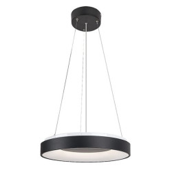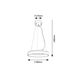 Charakteryzująca się czystym wzornictwem okrągła oprawa wisząca Ceilo oferuje dużą jasność i mnóstwo dodatkowych funkcji, dzięki czemu jest doskonałym wyborem do większości nowoczesnych salonów. Wykonana z metalu i tworzywa sztucznego oprawa w kolorze czarnym jest uzupełniona białym kloszem z tworzywa sztucznego i może być przymocowana do sufitu za pomocą okrągłej podstawy dekoracyjnej. Oprawa Celilo posiada wbudowane źródło światła LED klasy energetycznej G o mocy 38 W, strumieniu świetlnym z kloszem - 3150 lumenów, bez klosza - 3800 lumenów. Trwałość źródła światła wynosi 25.000 godzin. Istnieje możliwość regulacji temperatury barwowej oprawy wiszącej w zakresie od 3000 do 6500K, co oznacza, że oprawa może emitować ciepłobiałe, naturalne lub zimnobiałe światło. Dodatkowe funkcje oprawy to regulowana jasność, pamięć, timer, funkcja światła nocnego. Jasność i timer mogą być regulowane za pomocą pilota, natomiast temperatura barwowa i pamięć można ustawić za pomocą przełącznika lub pilota. Napięcie baterii wynosi 1,5 V, a pojemność 400 mAh. Wymiary oprawy wiszącej Ceilo wynoszą: średnica 480 mm, zwis 1300 mm, średnica otworu montażowego 175 mm.
