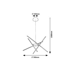 Unikalne wzornictwo wykonanej w nowoczesnym stylu oprawy wiszącej Henli sprawia, że może ona stać się charakterystycznym elementem wyposażenia salonu, jadalni lub sypialni. Ten spektakularny model składa się z przecinających się elementów prętowych, które można obracać, zmieniając ogólny efekt według własnych upodobań. Wykonana z metalu oprawa w kolorze czarnym jest uzupełniona białym kloszem akrylowym i może być przymocowana do sufitu za pomocą okrągłej podstawy dekoracyjnej. Oprawa Henli posiada wbudowane źródło światła LED klasy energetycznej G o mocy 30 W, strumień świetlny z kloszem - 1400 lumenów, bez klosza - 3850 lumenów. Trwałość źródła światła wynosi 20.000 godzin. Źródło światła o temperaturze barwowej 3000K świeci ciepłym białym światłem, które jest relaksujące dla oczu, idealne do relaksu i wypoczynku i tworzy przytulną, miłą atmosferę. Wymiary oprawy wiszącej Henli są następujące: średnica 760 mm, zwis regulowany w zakresie od 400 do 1500 mm, średnica otworu montażowego 150 mm.