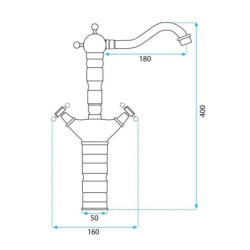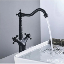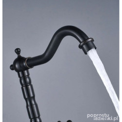 Prezentujemy Państwu niezwykle piękną i wyjątkową w swoim rodzaju baterię z obracaną wylewką. Finalnie osiągnięty styl retro z mosiężnymi elementami wizualnymi, podkreślą wyjątkowość każdej łazienki lub kuchni. Bateria jest przystosowana do montażu na blacie lub zlewozmywaku. Głowica zastosowana w tej baterii jest wyjątkowo wytrzymała przez zastosowany ceramiczny materiał. Bateria została wykonana z mosiądzu pokrytego trwałą warstwą czarnej farby, która jest trwała i łatwa w utrzymaniu.
