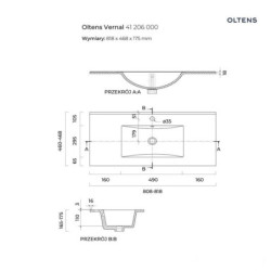 2. Oltens Vernal umywalka 80x46 cm meblowa prostokątna biała 41206000