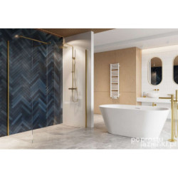 Dostępna w różnych kolorach wykończenia (chrom, czarny mat, złoty połysk, złoty szczotkowany i miedziany szczotkowany), ścianka idealnie wpasowuje się w eleganckie, współczesne wnętrza.